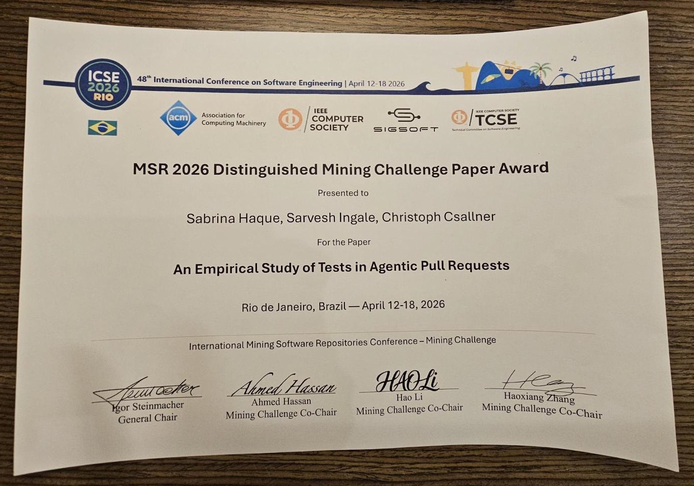 - ACM SIGSOFT Distinguished Paper Awards: